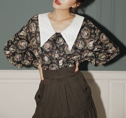トップス レディース 送料無料 シャツ ブラウス 長袖 襟付き ビッグカラ— ウサギ レトロ ヴィンテージ パフスリーブ ゆったり 抜け感 こなれ感 シック クール カッコイイ かっこいい 個性的 華やか 派手 無地 春 春服 春物 秋 秋服 秋物 10代 20代 普段使い 重ね着 着回し おしゃれ お洒落 ラフ カジュアル 前開き シルバー 銀 ブラック 黒 グレー 灰色 涼し 通気性 薄手 ポリエステル シフォン シフォンシャツ ワイド 存在感 モード系 エキゾチック デート
