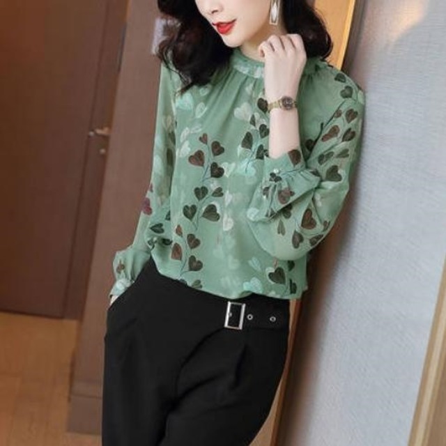 トップス レディース 送料無料 シフォンブラウス リーフプリントブラウス タックブラウス 長袖 フリル バルーンスリーブ ドレスブラウス おしゃれ スタイル 小顔見せ 着痩せ 体形カバー インスタ トレンド きれいめ かわいい エレガント フェミニン リーフ柄 ドレープ とろみ感 オフィス 通勤 OL フォーマル キュート ガーリー 大人かわいい プラスサイズ ラージサイズ 大きいサイズ M L XL 2XL 3XL ブラウスシフォン 上品 シンプル フロントタック ギャザー タッキング