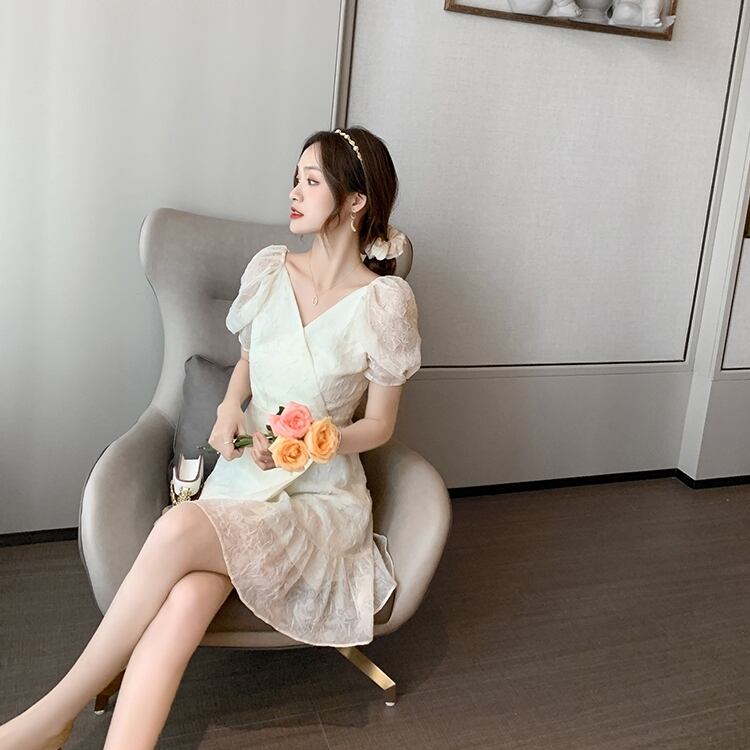 ワンピース レディース 送料無料 フレアワンピース シフォンワンピース ミニ丈 膝丈 Vネック サープリスネック 半袖 パフスリーブ バブルスリーブ ランタンスリーブ ウエストマーク フリル フレア シフォン 透け感 シースルー バックリボン 白 ホワイト 無地 Aライン フィットアンドフレア Xライン かわいい 大人可愛い シンプル お洒落 おしゃれ こなれ感 抜け感 ラブリー キュート ラブリー 10代 20代 春 春服 夏 夏服 普段使い デート おでかけ 韓国系 オルチャン ファッション コーデ