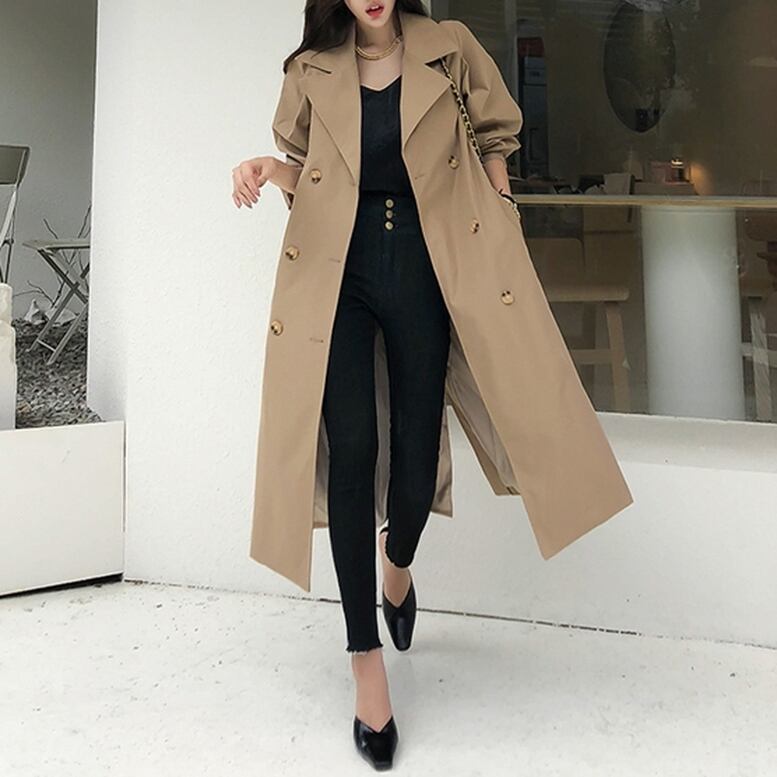 女性らしいフォルムを演出するドレッシーなトレンチコート
