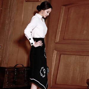 モノトーンの配色ラインに独特の模様がポイントのスカート