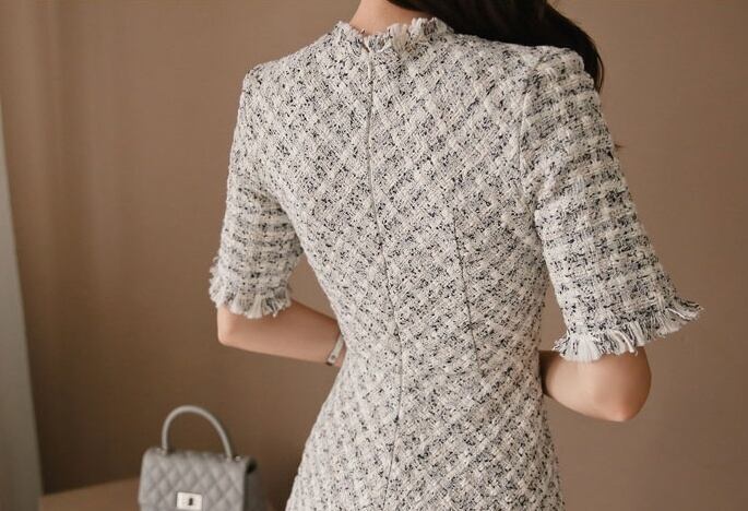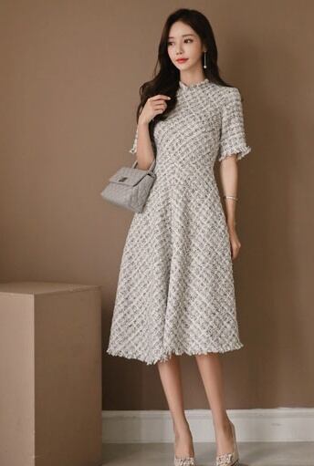 ツイード 調 大人 ワンピース Aライン フレア ハイ ネック 韓国 半袖 5分袖 五分袖 袖あり フレア セミフレア Aライン かわいい 大人可愛い きれいめ シンプル 大人 上品 おしゃれ お洒落 キュート ガーリー 存在感 白 ホワイト 灰色 グレー 入学式 入園式 卒業式 卒園式 謝恩会 結婚式 二次会 披露宴 OL 通勤 女子会 パーティー イベント モテ 10代 20代 30代 40代 50代