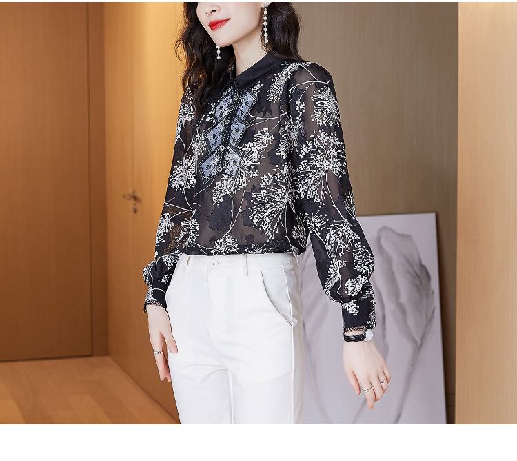 トップス レディース 送料無料 2色 シャツ ブラウス 長袖 襟付き チュール シフォン ビッグカラ— 幾何学模様 台形 パフスリーブ ゆったり 透け感 抜け感 こなれ感 シック クール カッコイイ かっこいい 個性的 華やか 派手 無地 春 春服 春物 秋 秋服 秋物 10代 20代 普段使い 重ね着 着回し おしゃれ お洒落 ラフ カジュアル 前開き シルバー 銀 ブラック 黒 グレー 灰色 涼し 通気性 薄手 ポリエステル シフォン シフォンシャツ ワイド 存在感 モード系 エキゾチック デート
