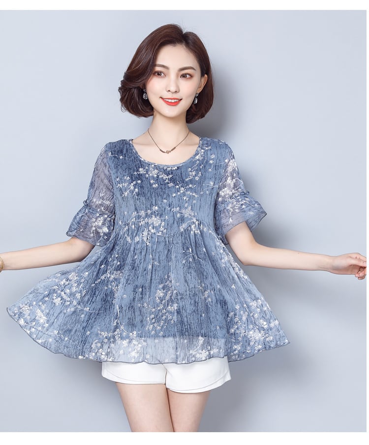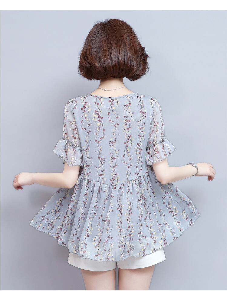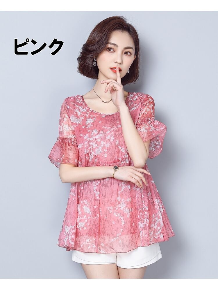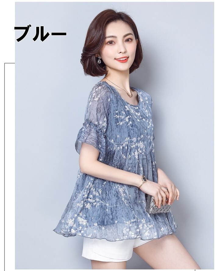 トップス レディース 送料無料 3色 シャツ ブラウス クロップトップ ショート丈 半袖 襟なし クルーネック パフスリーブ フリル 花柄 水彩 ゆったり 透け感 抜け感 こなれ感 シック クール かっこいい 個性的 華やか 派手 無地 春 春服 春物 秋 秋服 秋物 10代 20代 普段使い 重ね着 着回し おしゃれ お洒落 ラフ カジュアル 前開き シルバー 銀 ブラック 黒 グレー 灰色 涼し 通気性 薄手 ポリエステル シフォン シフォンシャツ ワイド 存在感 モード系 エキゾチック デート