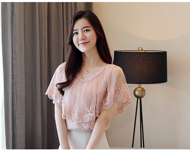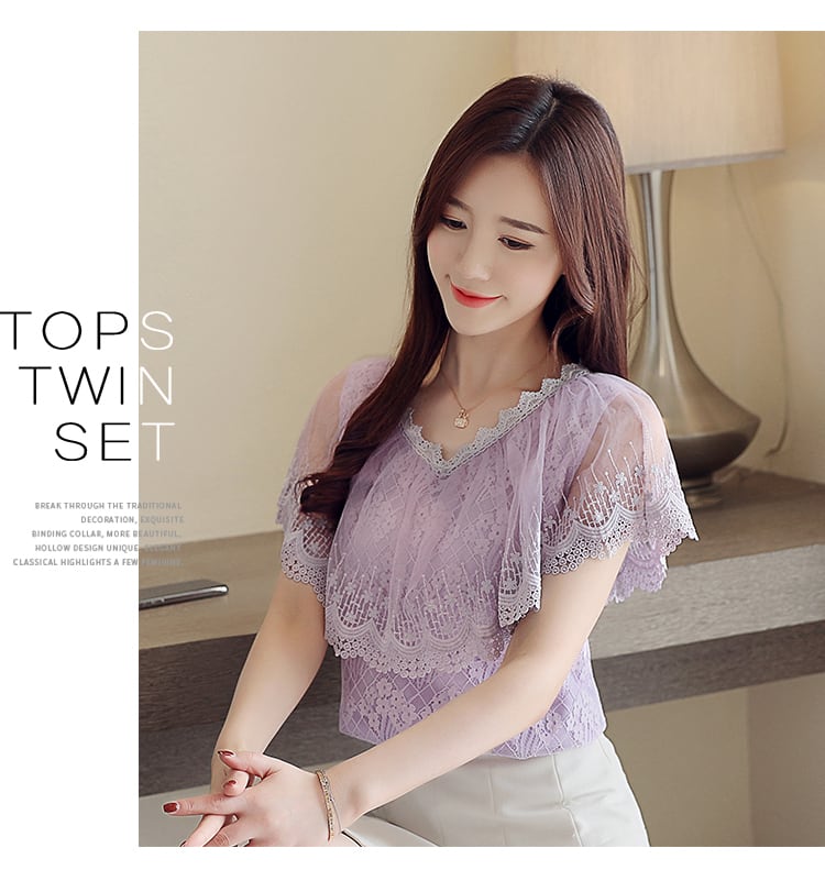 トップス レディース 送料無料 2色 レースブラウス 半袖 シフォンブラウス レースケープブラウス おしゃれ スタイル 小顔見せ 着痩せ 体形カバー インスタ トレンド きれいめ かわいい エレガント クラシカル フェミニン 透け感 レース オフィス 通勤 OL お出かけ お呼ばれ キュート ガーリー かわいい S M L XL 2XL ピンク パープル 上品 レース シースルー フェアリー ロマンチック 夢可愛い ブラウス フェミニン レーシー フリル フレア パステルカラー Vネック