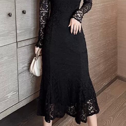 レースシースルー ロングドレス パーティドレス クルーネック 送料無料 レディース ブラック 総レース マーメイド 大人可愛い きれいめ 大人女子 エレガント 肌見せ デコルテ 無地 春 秋 ガーリー 10代 20代 大人 学生 韓国系 お出かけ 外出 きれいめカジュアル 着回し ファッション デート コーディネート 重ね着 休日 特別な日 お祝い 記念日 メンズウケ カジュアル 普段着 春コーデ 秋コーデ 韓国 おしゃれ シンプル スタイル ゆったり 細見せ 韓国ファッション 長袖 30代 ママコーデ
