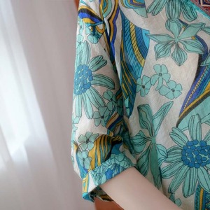 レトロ調フラワープリントが鮮やかなブラウス。