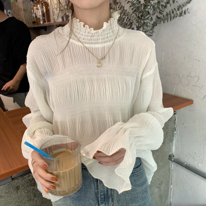 トップス レディース 送料無料 2色 ボリュームスリーブブラウス パフスリーブブラウス レースブラウス 長袖 ランタンスリーブ シャーリング ハイネック おしゃれ スタイル 小顔見せ 着痩せ 体形カバー インスタ トレンド きれいめ かわいい キュート フラワーレース 花柄 透け感 シースルー 女子会 オフィス 通勤 OL パフスリーブ バルーンスリーブ ギャザー エレガント フェミニン ホワイト ナチュラル 大人かわいい レーシー フリーサイズ こなれ感 オーバーサイズ ボリューム