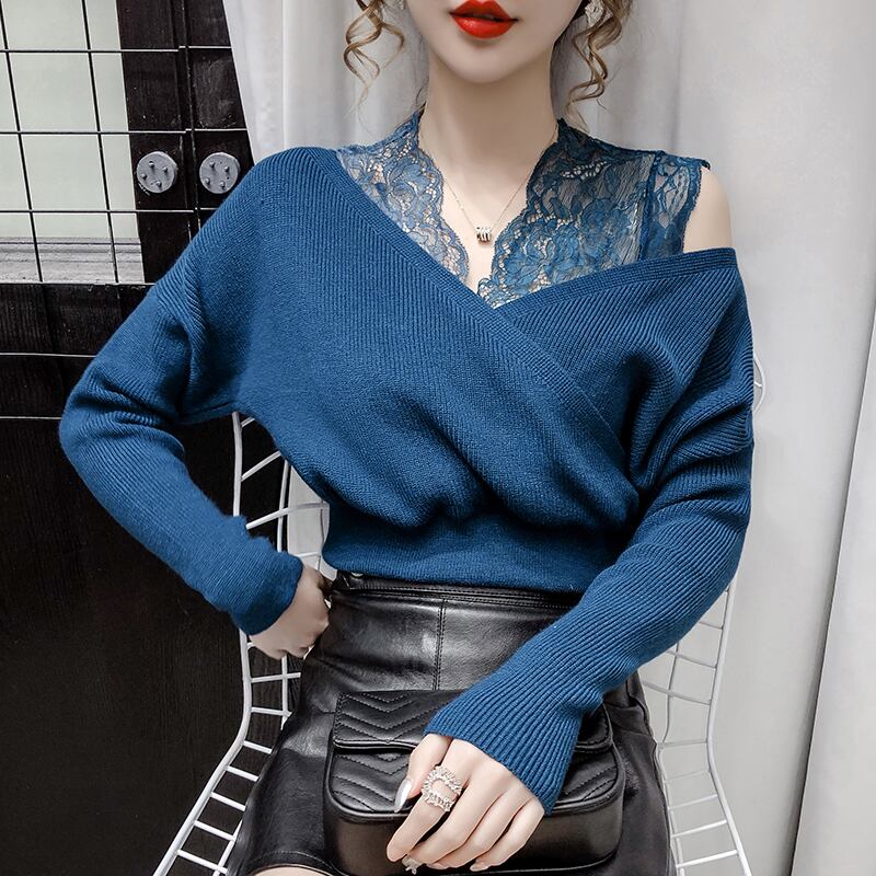 スウェット レディース 送料無料 3色 長袖 ニット Vネック カシュクール レース襟 ドルマンスリーブ リブニット カジュアル ルーズ マルチカラ— 楽チン 体型カバー 足長 水色 オレンジ ホワイト ブラック 10代 20代 デート 通学 おしゃかわ アクティブ ゆるかわ 送料無料