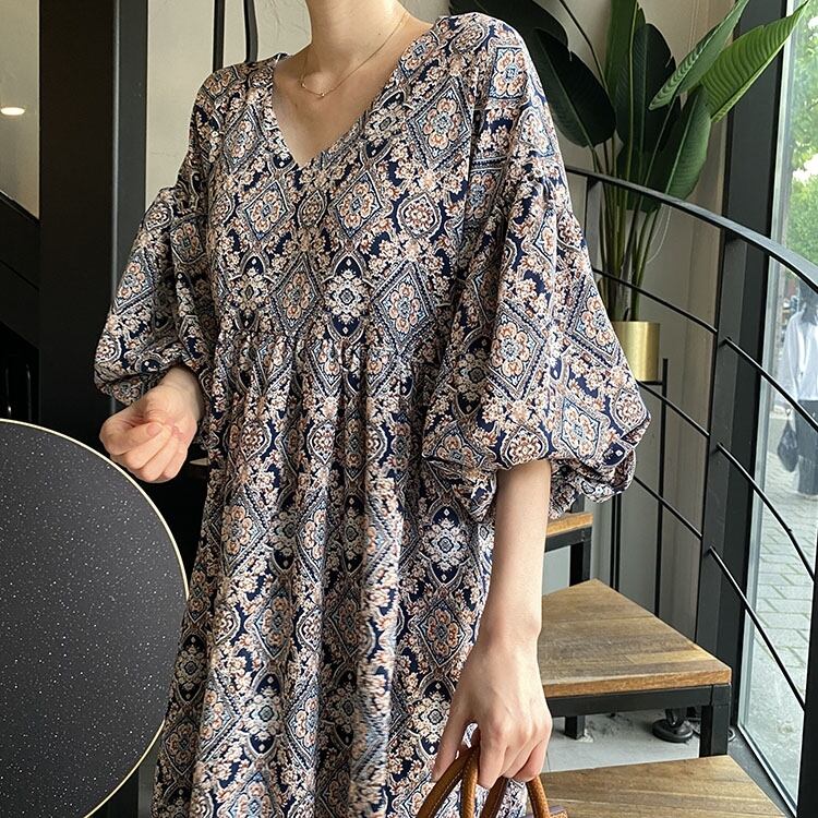 大きなバルーンスリーブがデザイン性に優れたワンピース。