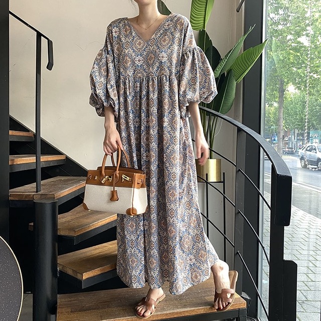ワンピース ロング 送料無料 2色 フレア Vネック パフスリーブ バルーンスリーブ 半袖 襟なし パフスリーブ 袖あり ビッグシルエット オーバーサイズ ペイズリー Aライン かわいい 大人可愛い 大人 上品 おしゃれ お洒落 大人可愛い 大人女子 ラブリー キュート ガーリー 主役級 存在感 とろみ感 オフホワイト ベージュ 無地 春 夏 10代 20代 30代学生 デート お出かけ 女子会 休日 パーティー イベント リゾート トレンド 流行