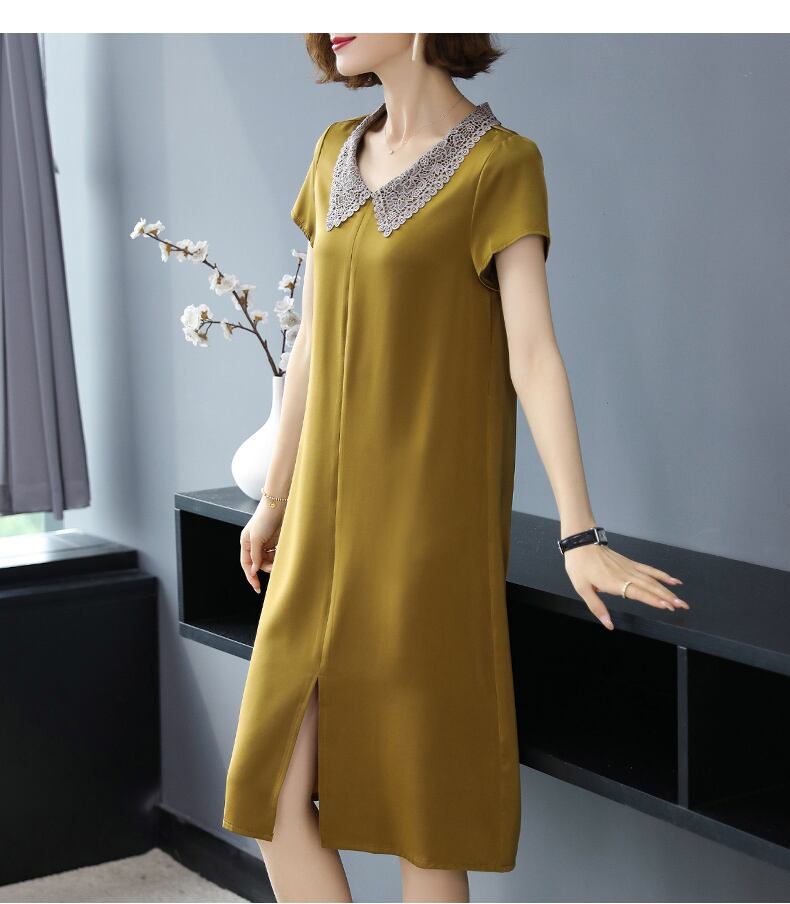 ワンピース レディース 送料無料 ショート丈 膝丈 ひざ丈 膝上 袖あり 半袖 襟付き セミフレア ストレート Iライン サイドスリット かわいい 大人可愛い きれいめ シンプル 上品 おしゃれ レトロ 大人女子 こなれ感 ラフ エレガント モダン XL 2XL 3XL 4XL 5XL 大きいサイズ 大きめ ビッグサイズ ゆったり 緑 グリーン 黄色 ベージュ イエロー 無地 春 夏 10代 20代 30代 40代 ママ OL お出かけ 休日 旅行 海 プール 普段使い 韓国系 楽ちん 体系カバー 美脚
