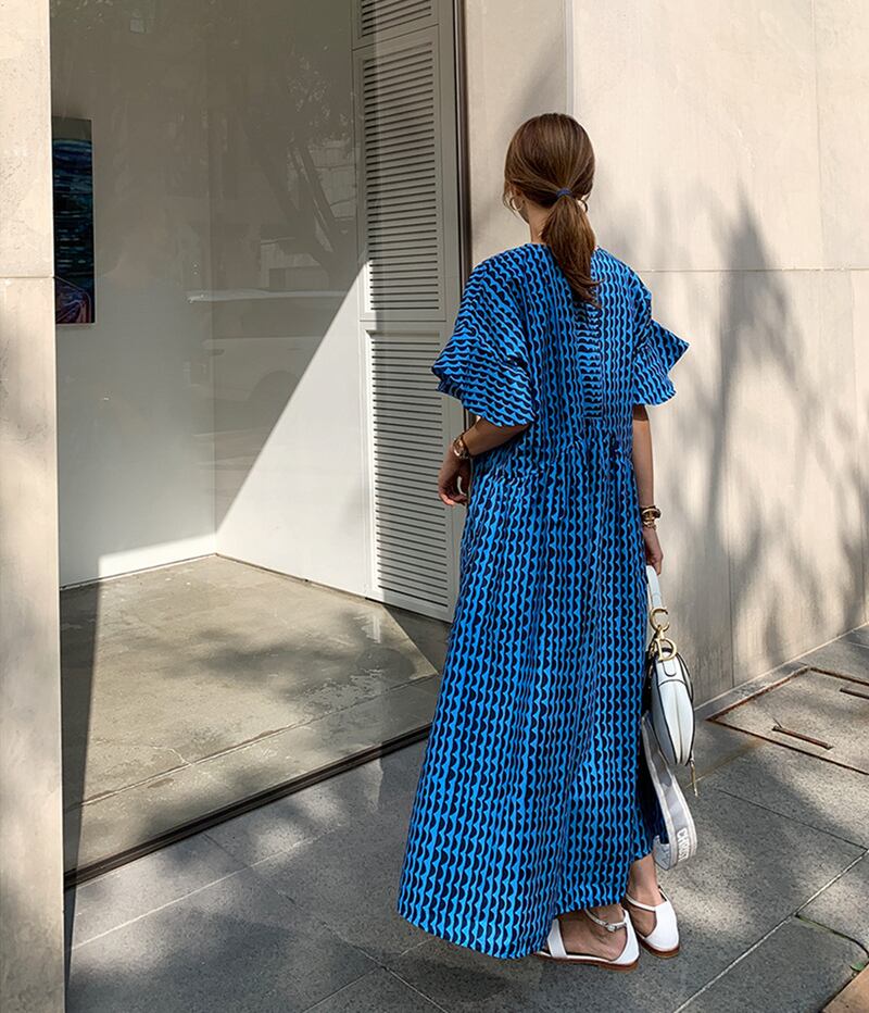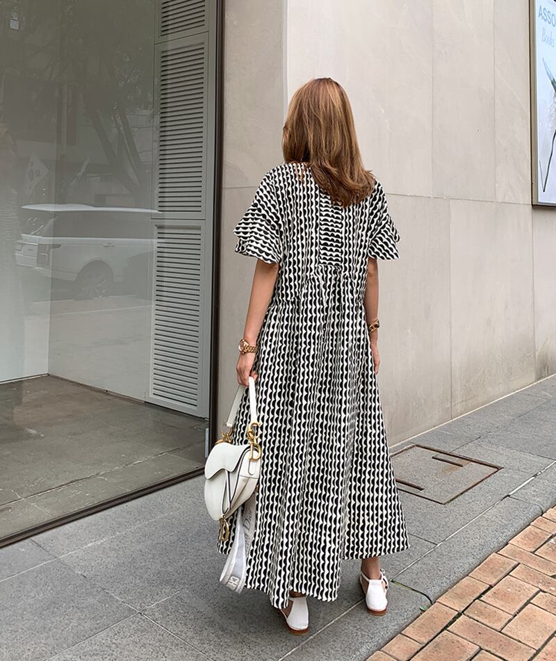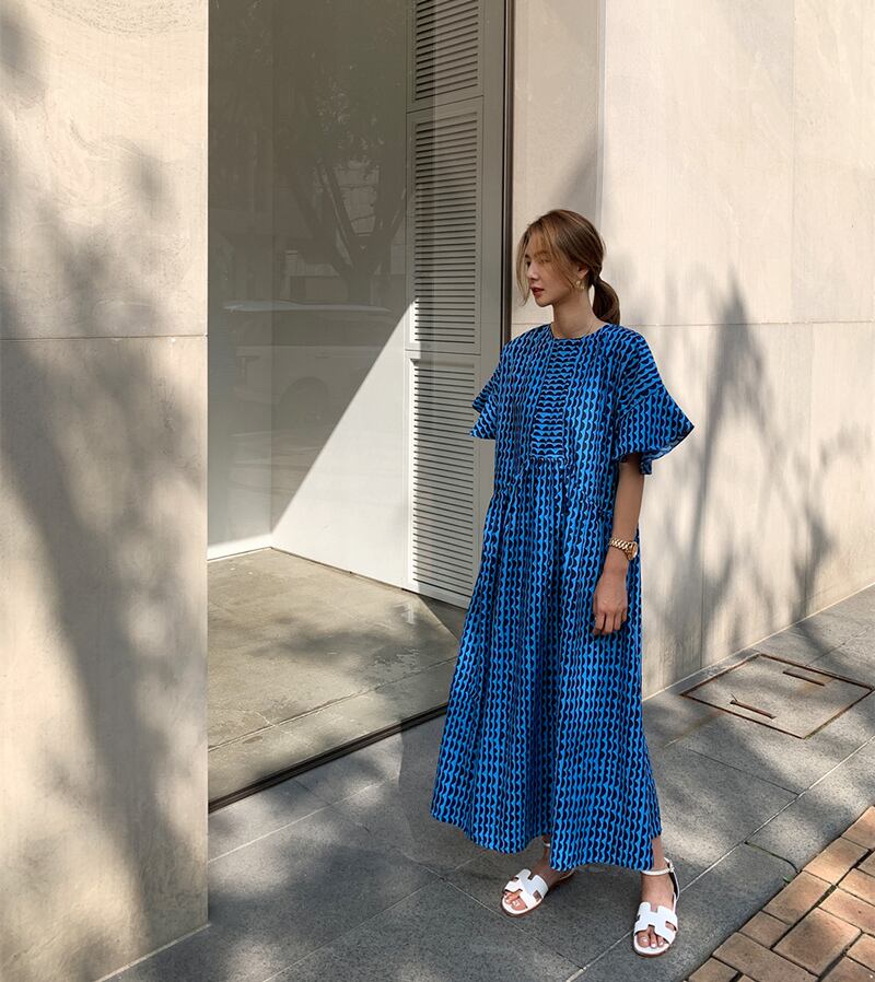 大きなフレアスリーブがデザイン性に優れたワンピース。