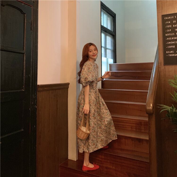 ワンピース レディース 送料無料 フレアワンピース フレア シャツワンピース スクエアネック 小花柄 半袖 五分丈 ボリューム袖 パフスリーブ バルーン袖 ランタンスリーブ ウエストマーク 体型カバー 細見え くびれ 脚長 美脚 二の腕カバー スタイル ミモレ丈 ロング丈 S M L XL ホワイト 白 花柄 フラワー 清楚 きれいめ 大人可愛い 上品 エレガント 透け感 抜け感 こなれ感 おしゃれ お洒落 大人女子 春 春服 夏 夏服 普段使い モテ お出かけ デート 女子会 通気性 涼し シフォン