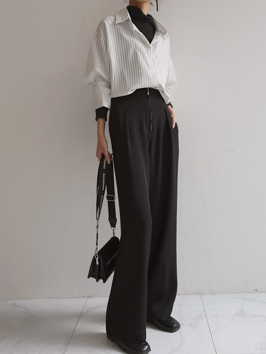 トップス レディース 送料無料 2色 ストライプシャツ オーバーサイズシャツ 長袖 ルーズフィットシャツ ブラック ホワイト モノトーン おしゃれ モード クール シンプル かっこいい こなれ感 スタイル 小顔見せ 着痩せ 体形カバー インスタ トレンド きれいめ エレガント ルーズ カジュアル オーバーサイズ オフィス 通勤 OL 大人かわいい S M 襟付き シャツカラー 白 黒 Yシャツ メンズライク マニッシュ ボーイッシュ ジェンダーレス ユニセックス ゆったり ルーズ ストライプ柄