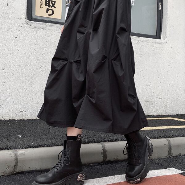 プリーツスカートハイウエスト ルーズ Aラインスカート レディース 送料無料 シャツワンピース ミドル丈 ハイネック ワッシャープリーツ ルーズ 長袖 ラージサイズラウンドネック Aライン フレア しわ加工 トレンド ファッション ボリューム袖 バルーンスリーブ パフスリーブ ゆったり 大きめ ゆる 楽ちん きれいめ シンプル かわいい 可愛い カジュアル おしゃれ お洒落 こなれ感 抜け感 上品 エレガント 春 春服 夏 夏服 デート 通学 学生 お出かけ 普段使い ブラック