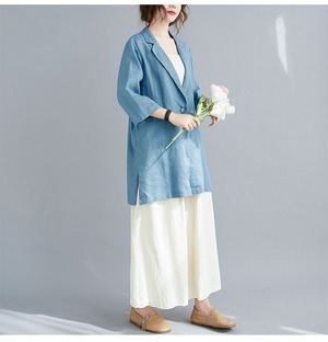 さらっとリネン素材の半袖ジャケット。ルーズなロング丈が大人っぽいこなれ感。夏の羽織りものとしても活躍してくれます!