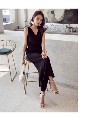 カシュクールデザインのVネックがセクシーなオールインワン。