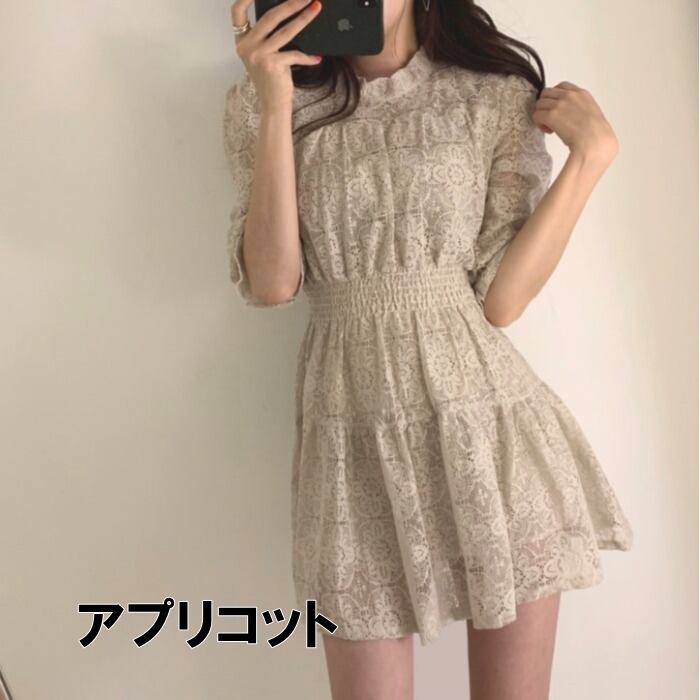 ワンピース ミディアム丈 送料無料 2色 ティアードワンピース シャーリング シャツワンピース レース ハイネック レース襟 シアー シースルー 半袖 袖あり パフスリーブ 袖あり パフスリーブ スクエアネック Aライン かわいい 大人可愛い 大人 上品 おしゃれ お洒落 大人可愛い 大人女子 ラブリー キュート ガーリー 主役級 存在感 とろみ感 オフホワイト ベージュ 無地 春 夏 10代 20代 30代学生 デート お出かけ 女子会 休日 パーティー イベント リゾート トレンド 流行