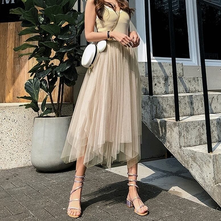 シアーなチュール素材をまとうフェミニンなデザインスカート