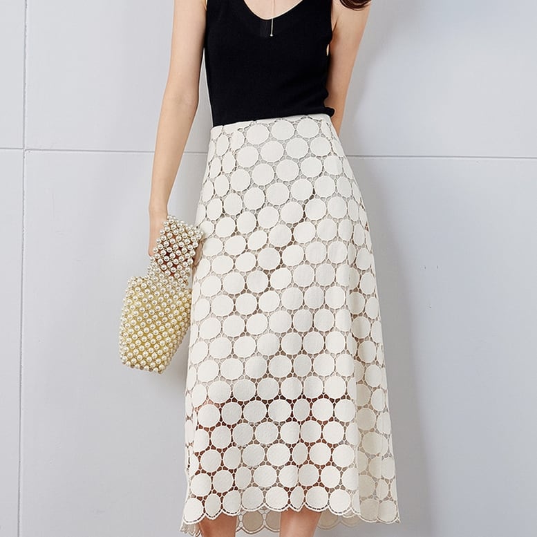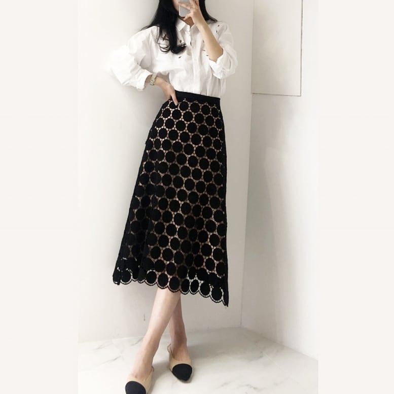 ドット刺繍スカート レディース 送料無料 スカート ボトムス ロングスカート フレアスカート ラウンドレースフレアスカート ドット刺しゅうレースロングスカート ひざ下 ミモレ丈 ロング レース 刺繍 ハイウエスト クロシェ 透け感 シースルー 大人可愛い きれいめ 上品 レトロ 大人女子 こなれ感 キュート ガーリー エレガント 抜け感 白 ホワイト 黒 ブラック ドット柄 高見え 格上げ インスタ映え 春夏 大人 かわいい おしゃれ 普段使い デイリー お呼ばれ お出かけ 通勤 通学 二次会 トレンド