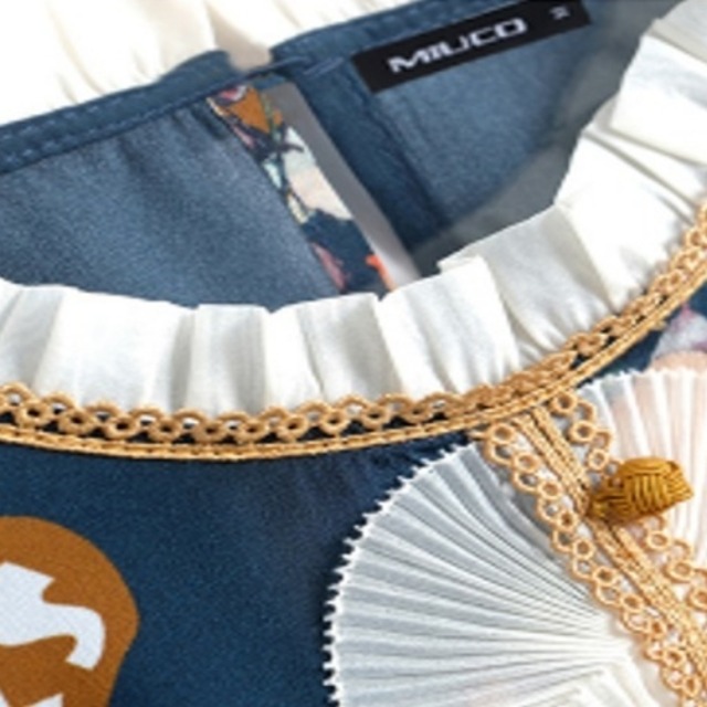 トップス レディース 送料無料 ブラウス シャツ プルオーバー 立ち襟 スタンドカラー クルーネック フリル 七分袖 7分袖 ボリューム袖 ランタンスリーブ パフスリーブ バルーンスリーブ ドロップショルダー 花柄 柄物 ネイビー 紺色 イエロー 黄色 体型カバー 二の腕カバー きれいめ 大人可愛い 上品 エレガント おしゃれ お洒落 こなれ感 抜け感 フェミニン 大人女子 個性的 M L XL 2XL ゆったり ゆる 大きめ 春 春服 夏 夏服 秋 秋服 20代 30代 40代 パーティー衣装 おでかけ