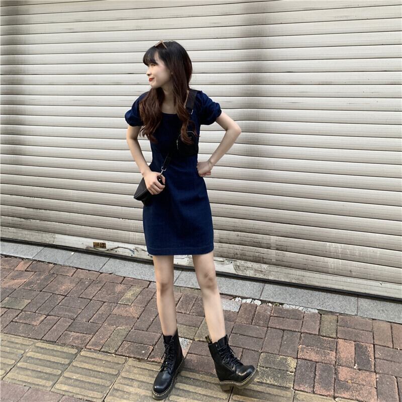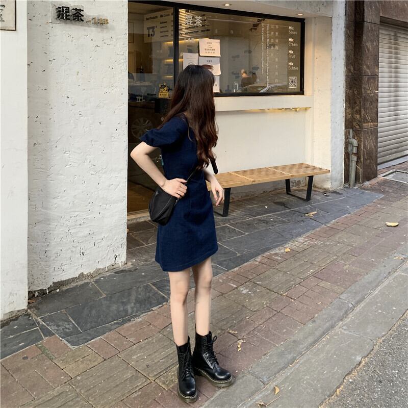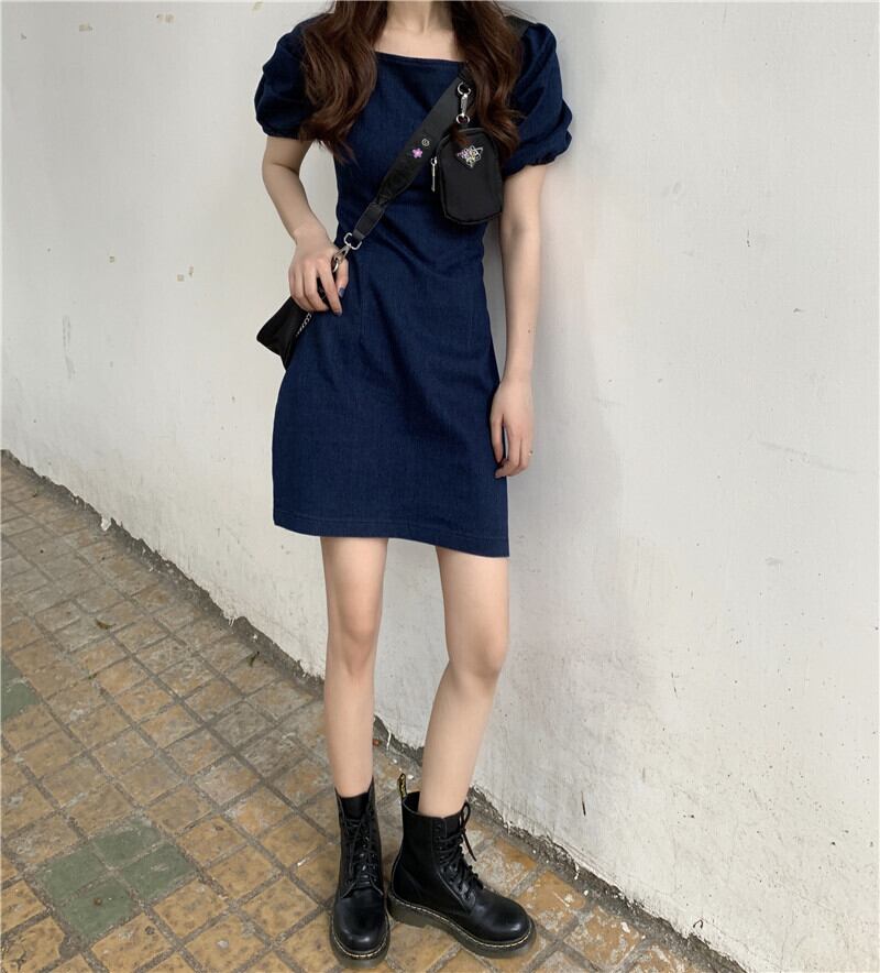 ワンピース レディース 送料無料 デニムワンピース ミニワンピース ショート丈 フレアワンピース スクエアネック 半袖 パフスリーブ ランタンスリーブ ボディコンシャス タイト ボリューム袖 青 ブルー 切り替えデザイン シフォン Aライン 大人可愛い かわいい きれいめ 上品 エレガント 清楚 カジュアル こなれ感 抜け感 大人女子 おしゃれ お洒落 S M L XL 普段使い 重ね着 モテ 体型カバー 二の腕カバー ハイウエスト 脚長 春服 夏服 秋服 デート おでかけ 楽ちん