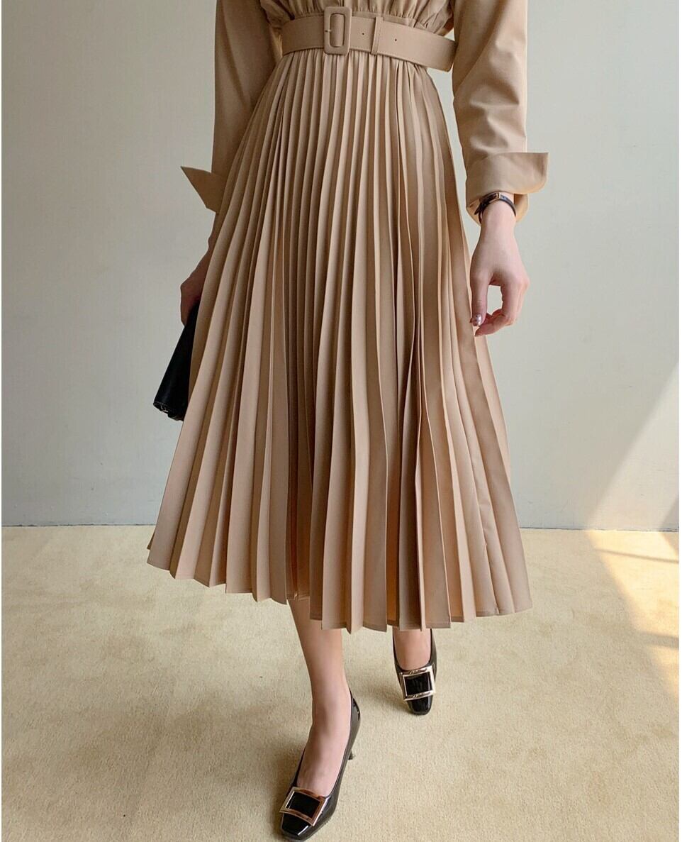 フレアプリーツが上品なワンピース。