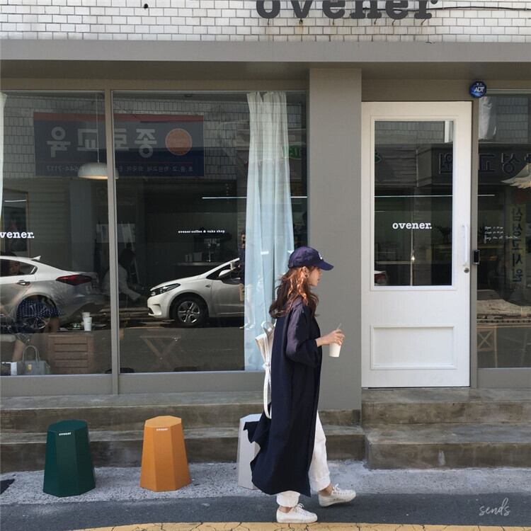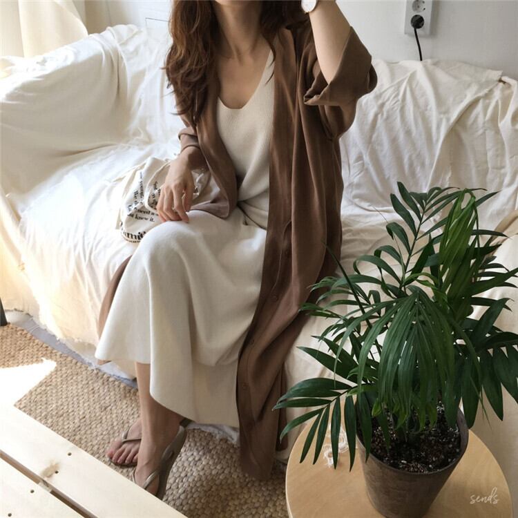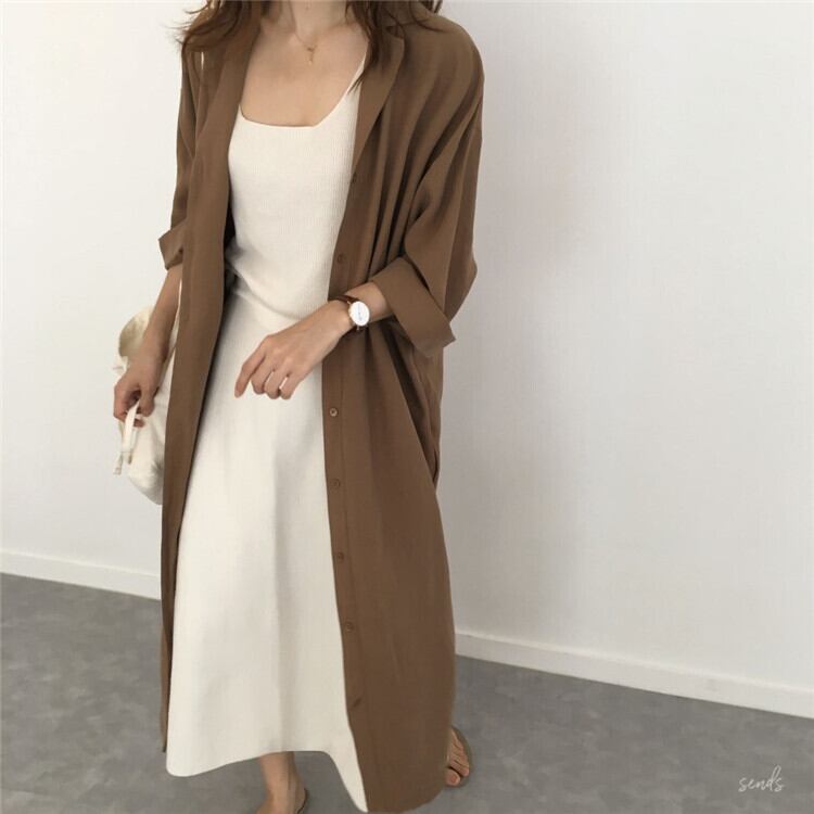 大人可愛い開襟シャツのロングワンピース。