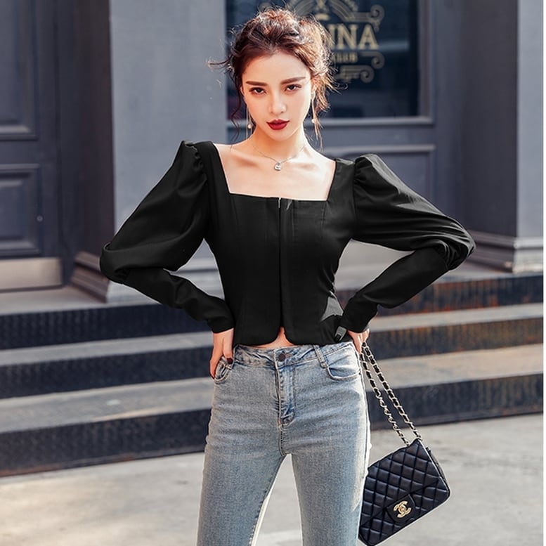 スクエアネックブラウス レディース 送料無料 コルセット風ブラウス トップス シャツ ブラウス パフショルダーロングカフストップス プルオーバー 長袖 ボリューム袖 パフスリーブ バルーンスリーブ スクエアネック スリム タイト 大人可愛い きれいめ 上品 レトロ 大人女子 こなれ感 キュート ガーリー エレガント 大人カラー モテ 高見え 格上げ インスタ映え 春夏 秋冬 大人 かわいい おしゃれ 普段使い デイリー お呼ばれ お出かけ パーティー 二次会 トレンド