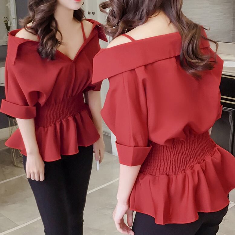 ペプラムシャツ レディース 送料無料 トップス シャツ ブラウス オフショルウエストシャーリングブラウス オフショルギャザーTOPS 袖あり 半袖 オフショルダー 襟付き スリム ペプラム ウエストマーク ハイウエスト ウエストゴム 大人可愛い きれいめ 上品 レトロ 大人女子 こなれ感 ラフ キュート ガーリー エレガント 抜け感 大人カラー 二の腕カバー 高見え 格上げ インスタ映え 春夏 大人 かわいい おしゃれ 普段使い お呼ばれ お出かけ 通勤 通学 旅行 二次会 トレンド
