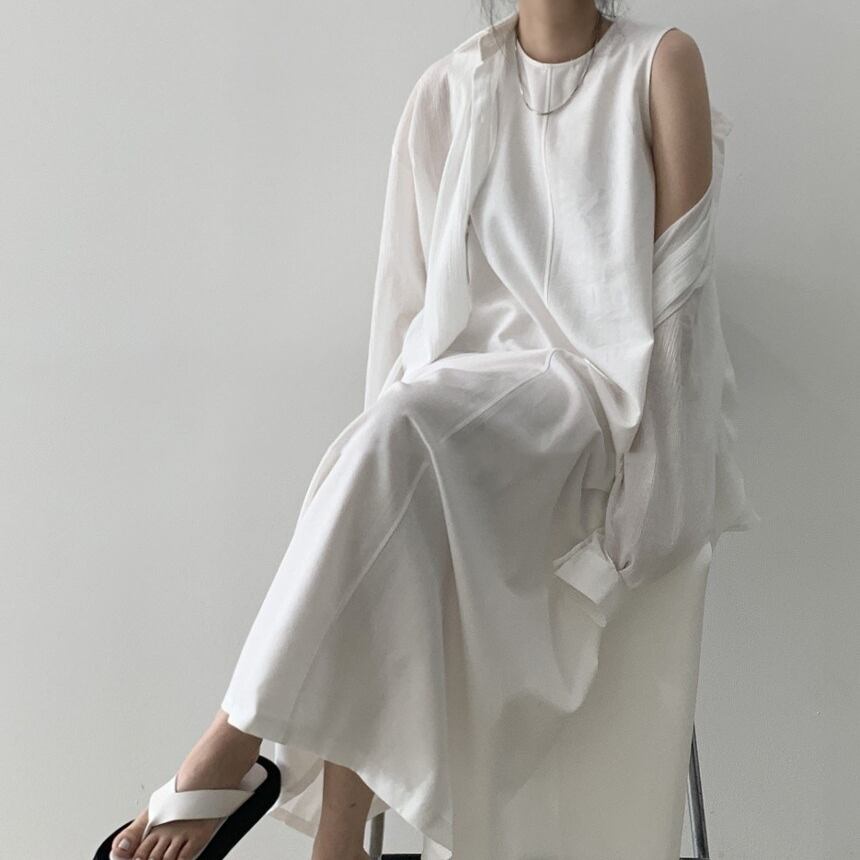 ワンピース レディース 送料無料 ロング丈 ミモレ丈 Tシャツワンピース 丸首 ラウンドネック ノースリーブ 袖なし プルオーバー Aライン ワイド 切り替えデザイン 白 ホワイト 黒 無地 ゆったり 楽ちん リラックス 体型カバー 太ももカバー ブラック シンプル ラフ カジュアル シック 大人女子 大人 きれいめ こなれ感 おしゃれ お洒落 ルーズ 春 春服 夏 夏服 秋 秋服 普段使い 重ね着 着回し おでかけ 休日 デイリー 10代 20代 30代 40代 50代 コーディネート 涼し 通気性
