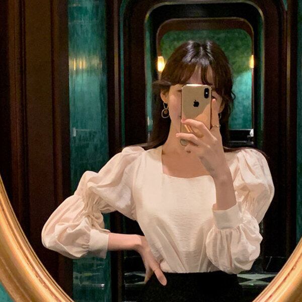 シャツウエスタンスウィートスモールシャツ レトロフレンチシャツスクエアカラーランタンパフスリーブトップ レディース 送料無料 ブラウス シャツ ホワイト 白 ピンク アプリコット 単色 透け感 こなれ感 抜け感 ガーリー かわいい 可愛い 涼し 通気性 キュート 上品 エレガント きれいめ ラブリー 女の子 お洒落 おしゃれ 春 春服 夏 夏服 10代 20代 デート おでかけ モテ 女子会 普段使い 着回し 重ね着 定番 2021 韓国 韓国系 オルチャン