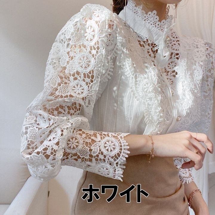 トップス レディース 送料無料 3色 ブラウス シャツ リボン ボウタイ Vネック 総レース パールボタン 長袖 総レース 刺繍 クロシェ シフォン 花柄 レース ポリエステル ホワイト 白 ピンク アプリコット 単色 透け感 こなれ感 抜け感 ガーリー かわいい 可愛い 涼し 通気性 キュート 上品 エレガント きれいめ ラブリー 女の子 お洒落 おしゃれ 春 春服 夏 夏服 10代 20代 デート おでかけ モテ 女子会 普段使い 着回し 重ね着 定番 2021 韓国 韓国系 オルチャン