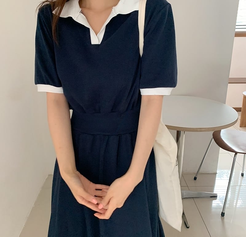 ロング ワンピース 送料無料 ミモレ パフスリーブ 半袖 五分袖 Vネック 襟付き バイカラー ポロシャツ フレア セミフレア Aライン ラブリー キュート ガーリー 白 ホワイト 黒 ブラック 春 夏 10代 20代 30代 40代 学生 通学 デート お出かけ 休日 イベント 旅行 着回し 普段使い 韓国系 オルチャン モテ トレンド インスタ映え 謝恩会 披露宴
