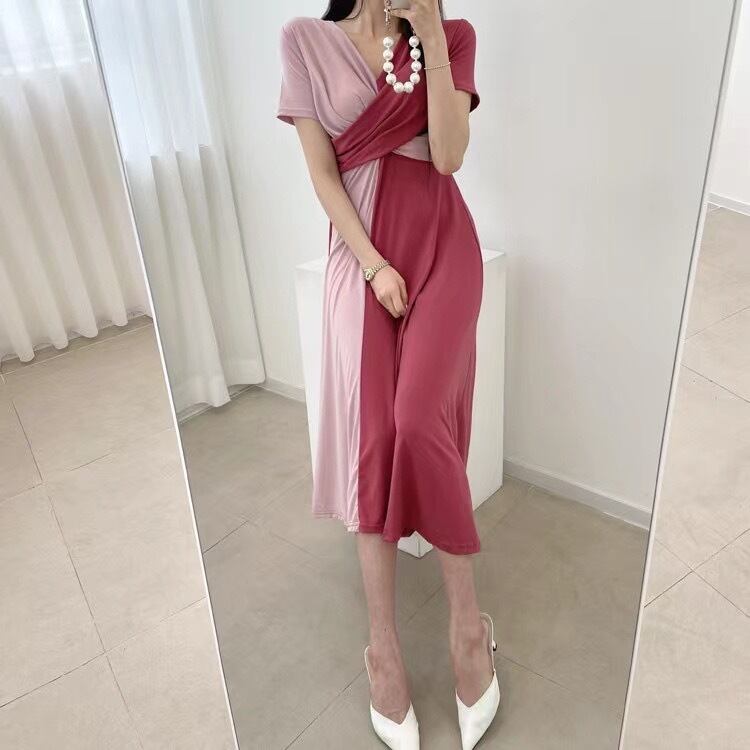 ワンピース レディース 送料無料 2色 Vネック ショルダーストラップ ボウノット バイカラー シンメトリー スリングボトミング 体系カバー エレガント シンプル 大人可愛い かわいい きれいめ お洒落 おしゃれ 大人女子 ワンピドレス イベント デート パーティ― 女子会 休日 お出かけ 韓国 オルチャン ファッション コーデ かわいい 大人可愛い きれいめ シンプル 大人 上品 おしゃれ お呼ばれ 二次会 かわいい モテコーデ ベーシック 大人かわいい インスタ トレンド モテコーデ