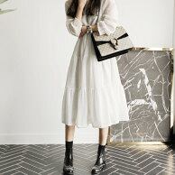 ドレス レディース フレンチスタイルコールドウィンドミニマリストレディース フェミニンミドル丈スカート レディース 送料無料 フレアワンピース フレア ボリューム袖 半袖 Aライン ワイド ゆったり ゆる おおきめ 楽ちん ハイウエスト 体型カバー 脚長 美脚 ピンク ブラック 黒 無地 シンプル カジュアル 大人可愛い かわいい おしゃれ お洒落 ラフ 大人女子 こなれ感 キュート ガーリー 上品 きれいめ エレガント 春 春服 夏 夏服 10代 20代 30代 普段使い