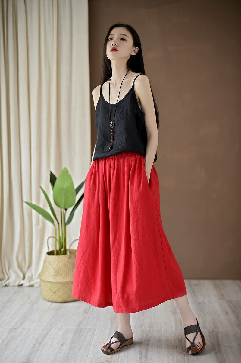 ボトムス レディース 送料無料 4色 ワイドパンツ ガウチョパンツ リネンパンツ ルーズ おしゃれ スタイル 着痩せ 体形カバー インスタ トレンド ナチュラル リラックス リゾート ルームウェア フリーサイズ かっこいい かわいい クール アクティブ お出かけ ゆったり 楽ちん ルーズ こなれ感 カジュアル リネン 麻 ホワイト ブラック レッド ナチュラル オーバーサイズ フレアパンツ キュロットスカート 夏 サマー ウエストゴム ドレープ ギャザー シャーリング