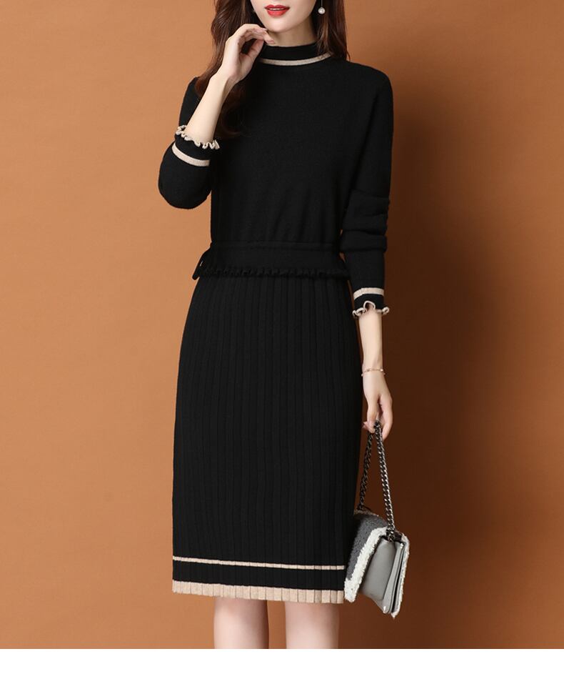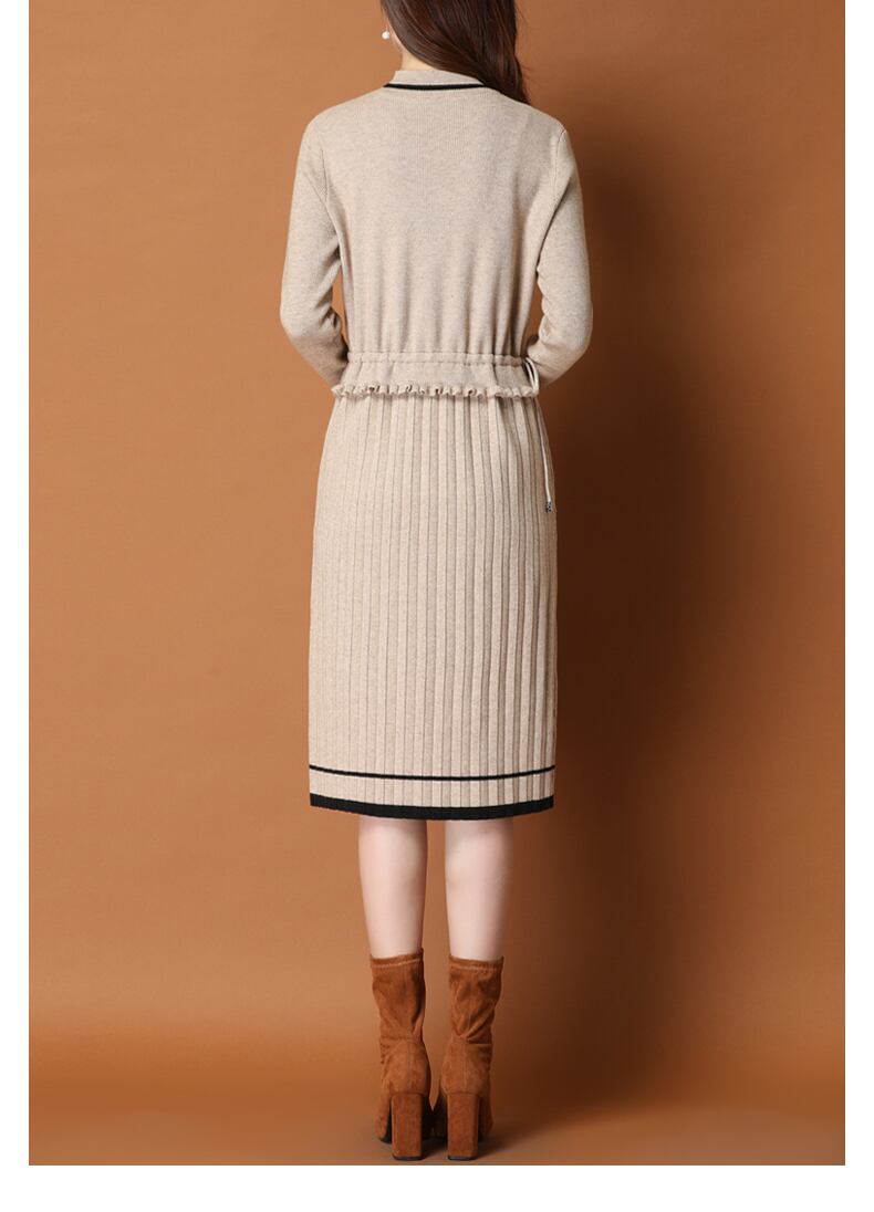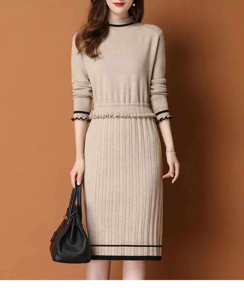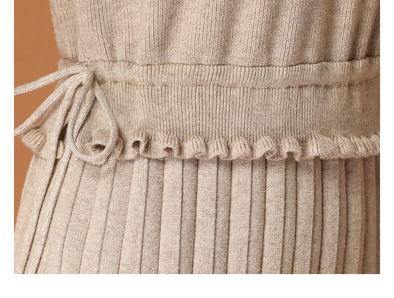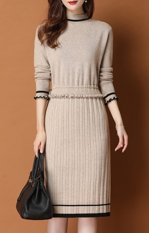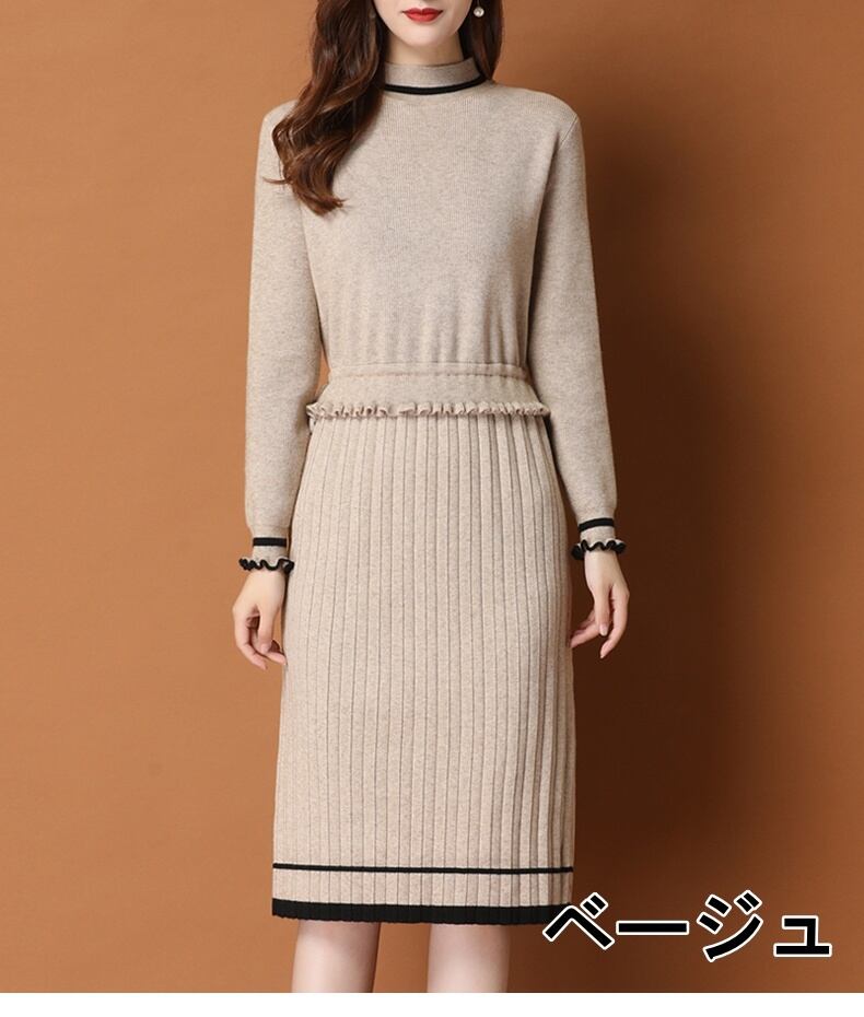 ワンピース レディース 送料無料 2色 ニットワンピース プリーツワンピース タイトワンピース おしゃれ スタイル 小顔見せ 着痩せ 体形カバー インスタ トレンド きれいめ かわいい エレガント フェミニン キュート ガーリー ハイネック ニット M L XL 2XL ブラック ベージュ デート 上品 ひざ丈 オフィス 通勤 OL ナチュラル シンプル バイカラー ツートーン ドローストリング サイズ調節 プリーツ フリル 伸縮性 ストレッチ