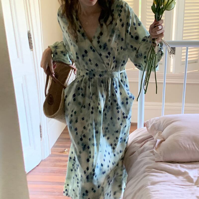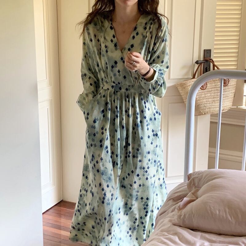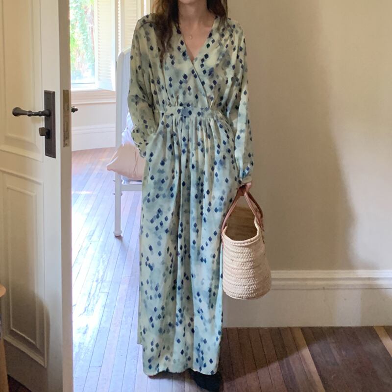 ワンピース レディース 送料無料 フレアワンピース フレア カシュクールワンピース ロング丈 マキシ丈 マキシワンピース Vネック サープリスネック 長袖 パフスリーブ プルオーバー バックリボンが サイドポケット ポケット付き ダイヤ柄 ひし形 柄物 フリーサイズ ゆったり ゆる 楽ちん リラックス ハイウエスト 体型カバー 脚長 二の腕カバー くびれ 細見え 大人可愛い エレガント 上品 おしゃれ お洒落 ラフ 大人女子 春服 夏服 普段使い おでかけ デート 休日 女子会 20代 30代 40代