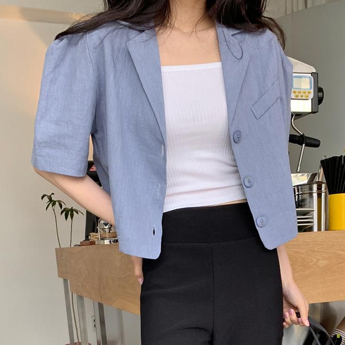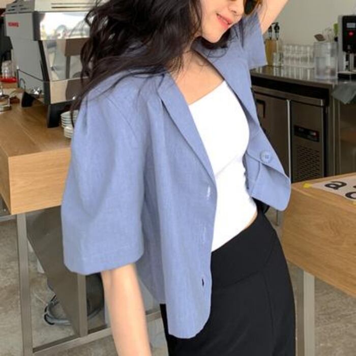 アウター レディース 送料無料 ジャケット ブレザー ワイド ストレート パフスリーブ ビッグシルエット オーバーシルエット 半袖 五分袖 5分袖 体型カバー 華奢見え 細見え 脚長 二の腕カバー 前開き ボタン ノッチドラペルカラー ノッチラペル スペンサージャケット 春 春服 夏 夏服 爽やか 涼し 重ね着 普段使い カジュアル こなれ感 抜け感 きれいめ シンプル ラフ おしゃれ お洒落 上品 カッコイイ かっこいい メンズライク ボーイッシュ 10代 20代 30代 デート 学生 おでかけ 着回し