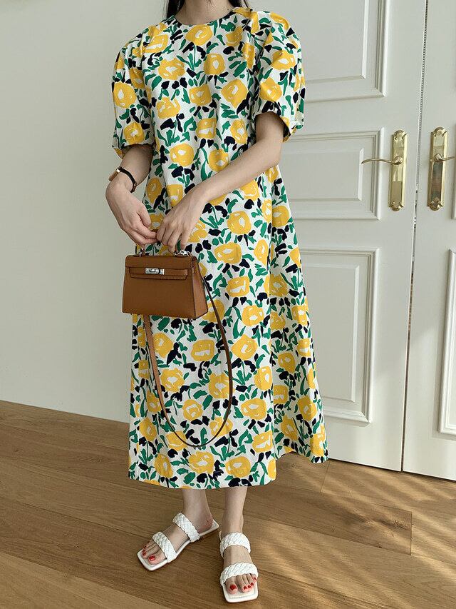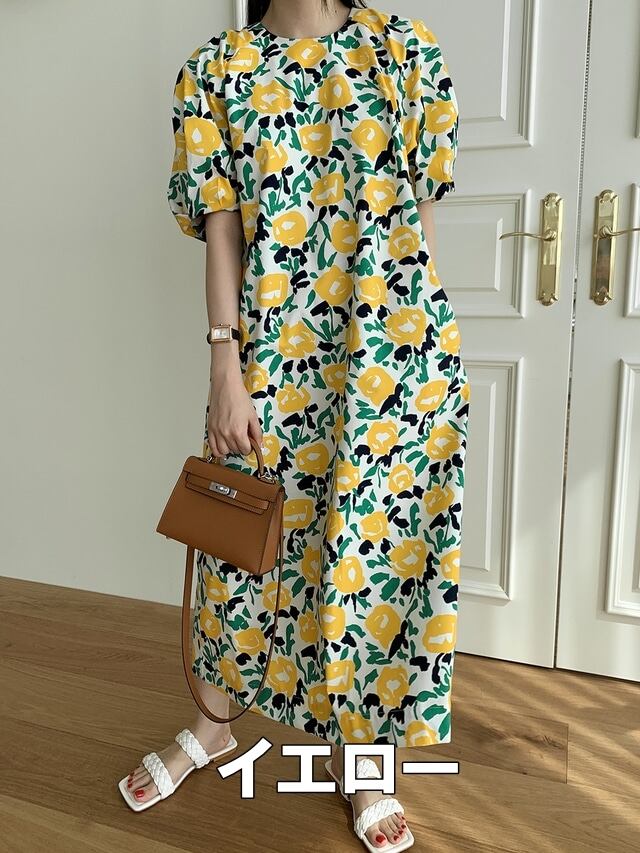 フェミニンなパフスリーブと北欧チックな生地が魅力。