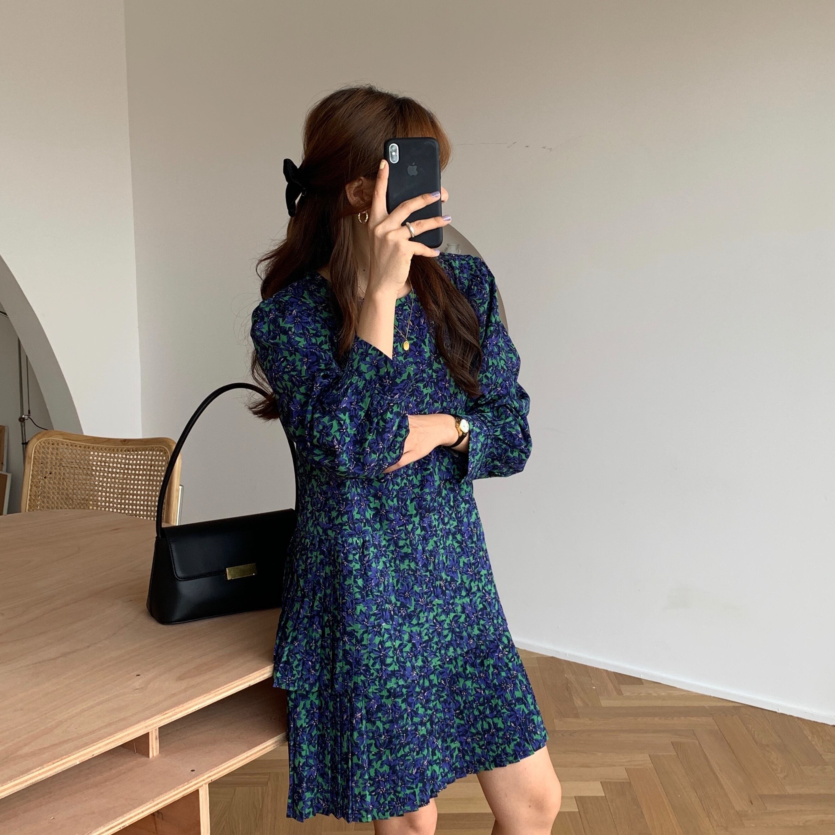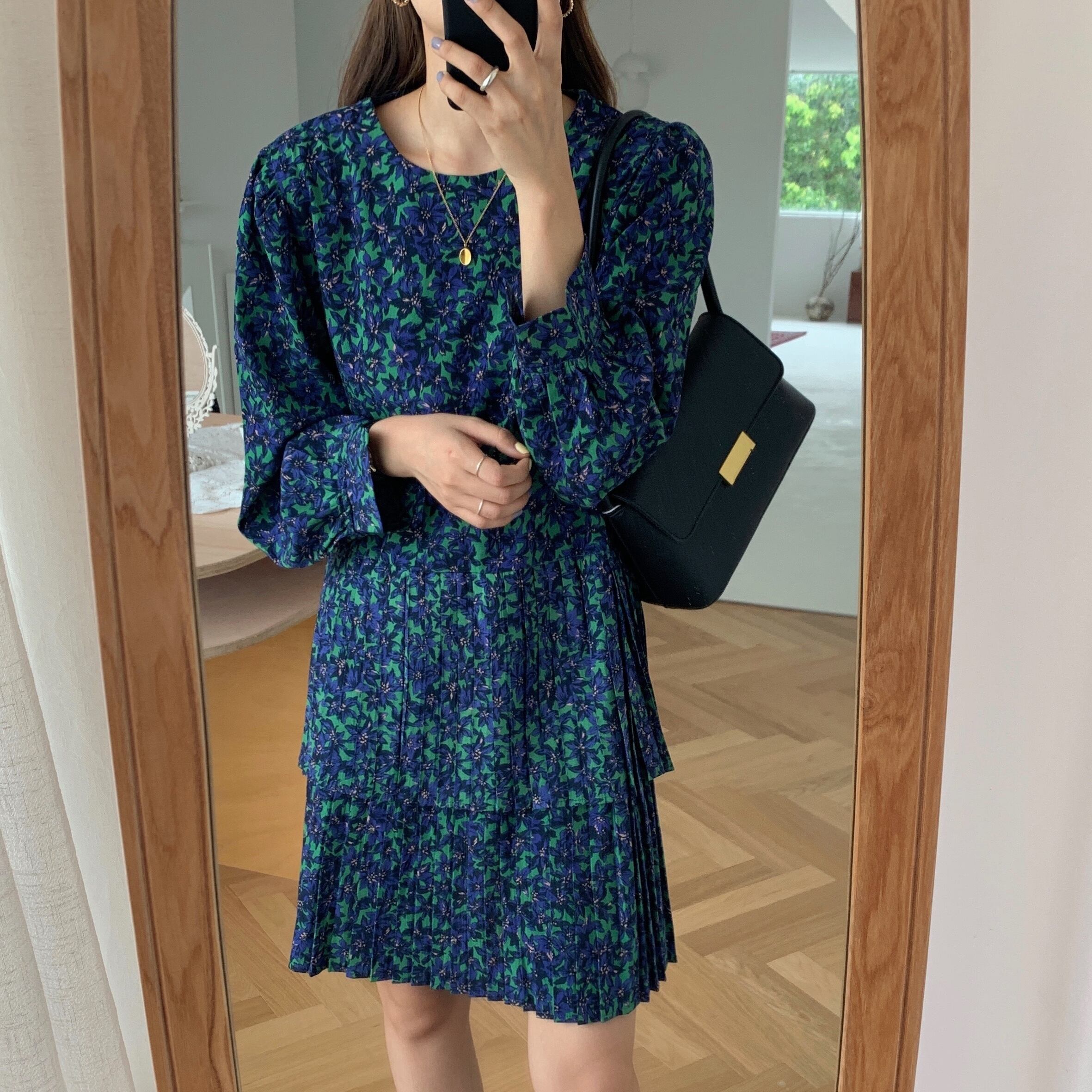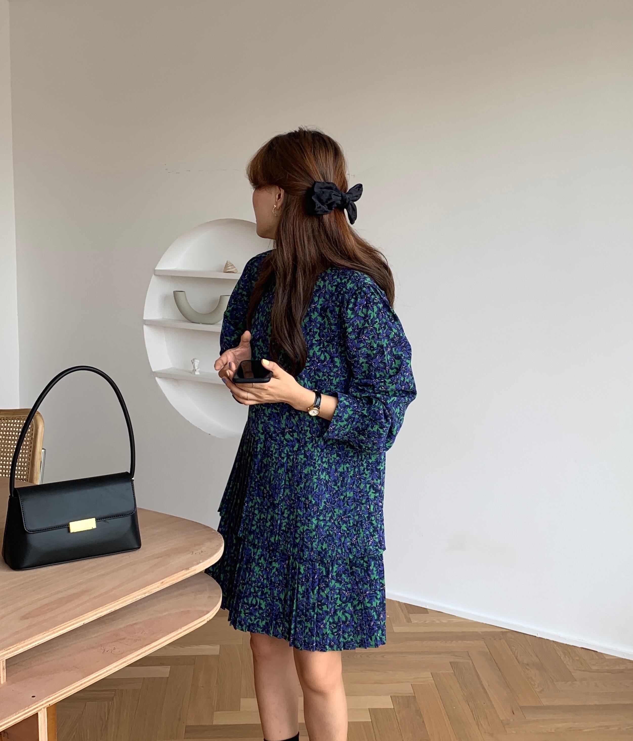 ウエストから下をプリーツに切り替えたミニワンピース。
