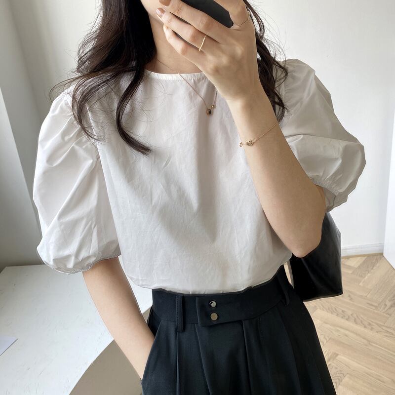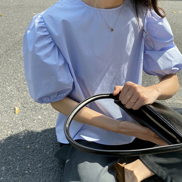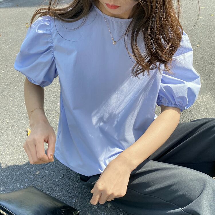 ふんわり袖がかわいいパフスリーブブラウス。シンプルなデザインなので色んなボトムスと相性抜群です!