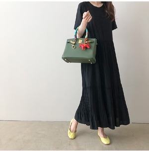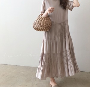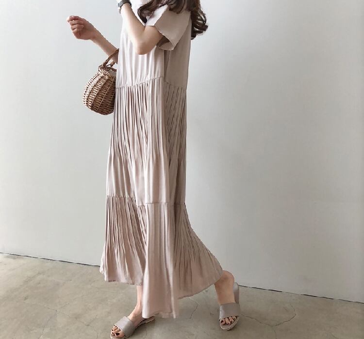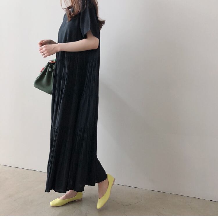細かいプリーツのティアードフリルが大人かわいいマキシワンピースです。夏のお出かけに。