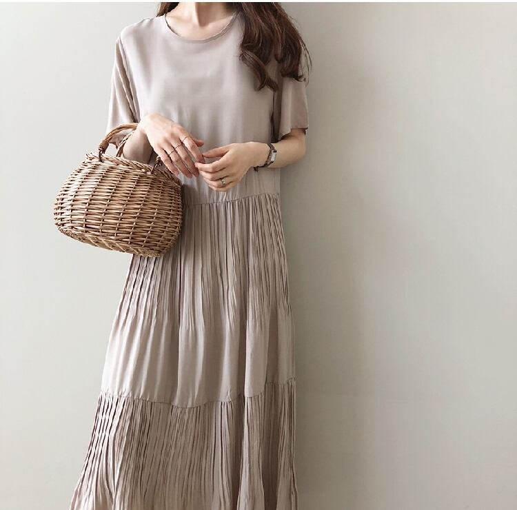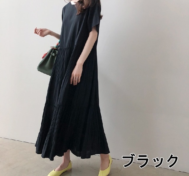 ワンピース レディース 送料無料 2色 ティアードワンピース 半袖 マキシワンピース おしゃれ エレガント シンプル スタイル 小顔見せ 着痩せ 体形カバー インスタ トレンド きれいめ フェミニン 大人かわいい ティアードフリル プリーツフリル ギャザー シャーリング グレージュ ブラック フレアスカート ドレープ とろみ感 マキシ丈 フレンチスリーブ デコルテ リゾート 旅行 デート お出かけ ナチュラル ハイウエスト ゆったり オーバーサイズ ゆる リラックス ガーリー キュート ラウンドネック