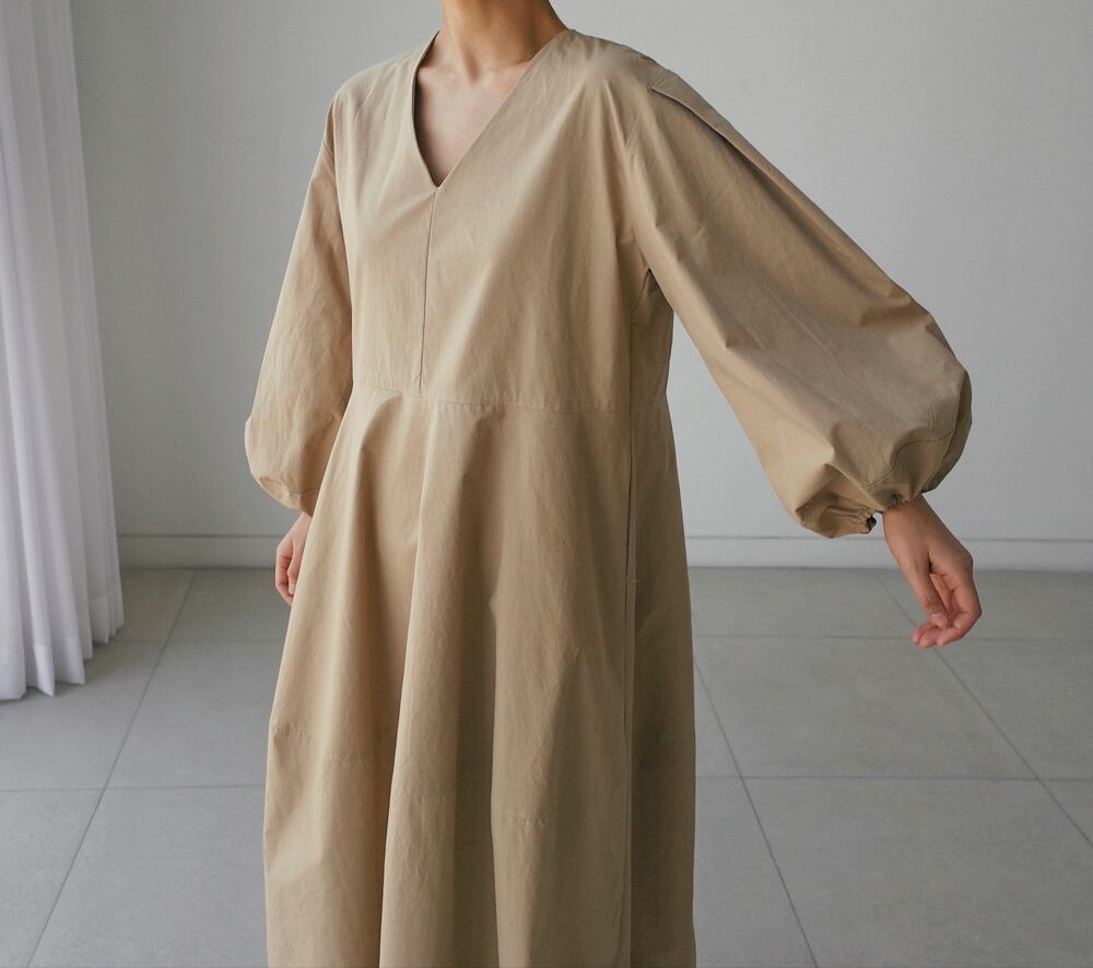 ボリューミーなシルエットが可愛い♡バルーンスリーブワンピース。ナチュラルな雰囲気のコットン素材です。