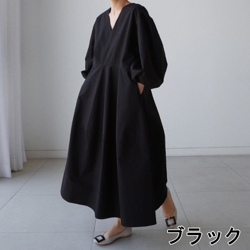 ワンピース レディース 送料無料 2色 フレアワンピース マキシワンピース バルーンスリーブワンピース ランタンスリーブワンピース 長袖 オーバーサイズ ボリュームスリーブワンピース リラックス リゾート コットン 綿 おしゃれ ナチュラル かわいい ラフ かっこいい こなれ感 スタイル 小顔見せ 着痩せ 体形カバー インスタ トレンド きれいめ エレガント ルーズ カジュアル ゆったり フレア 大人かわいい 上品 無地 ゆる ベージュ ブラック ドレープ Vネック マタニティ 妊婦 ふんわり