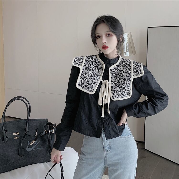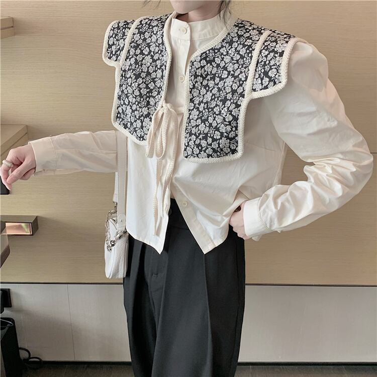 トップス レディース 送料無料 レイヤードシャツ ワンピース ケープ付き セーラー襟 花柄 小花柄 フラワー ベーシック ダブルポケットシャツ スリットシャツ おしゃれ スタイル 着痩せ 体形カバー インスタ トレンド きれいめ かわいい エレガント かっこいい ナチュラル コットン 綿 ゆったり ゆる リラックス リゾート 旅行 お出かけ オフィス OL 通勤 大人かわいい ホワイト 白 シャツ S M L XL 2XL バックスリット 上品 着回し メンズライク ユニセックス ジッパースリット
