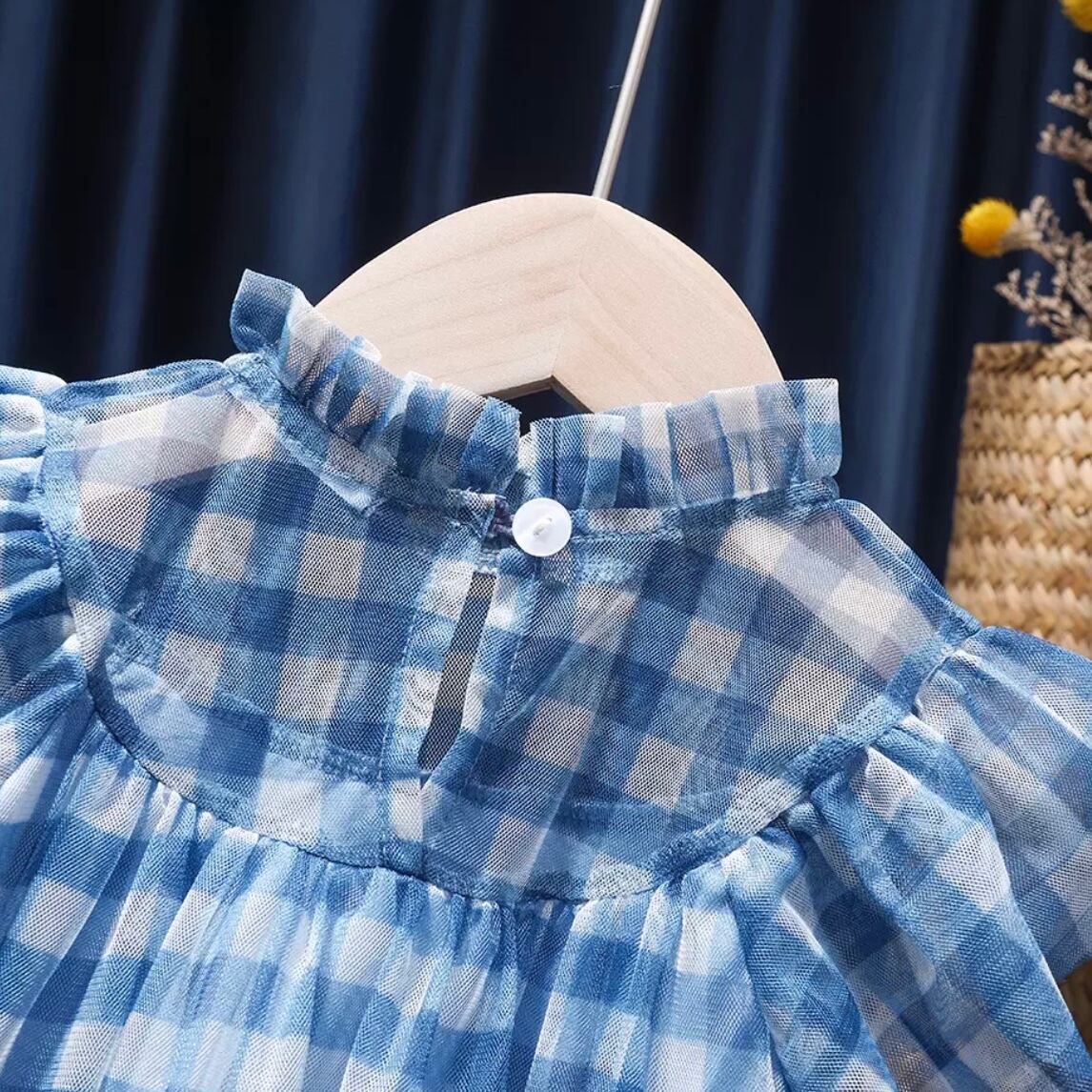 チェック柄のレースワンピース